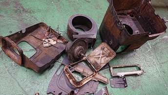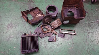 202005/18 GTR・・・手強いやつ今日やり切ったる! メンテナンス・大将商会 0 5月17日(日) 昨日は、ちょっとした小物をホームセンターなどで物色して・・・・ パワー回復できない・・・・けど、頑張らないと!! だから、今日は朝からブラスト頑張って、ヒーターユニットやり切ったる!!! 必至にしているところに・・・ 「ピッピッ」 ブラスト止めて、振り返ると・・・・ わざわざ??何しに???(笑) お土産頂きましたよ!! 楽しく会話の時間も終え、私は再び作業開始!! メッキするものを振り分け、後は塗装やっておきます! 純正は、薄いブルー?紺色?なのですが、私は、黒半艶で塗装やったりました! ん・・・・元通りに組めるのかな??? コアも、作り直さないといけないし。。。 なかなか組めない・・・・忘れてします。。。。 [13回]
