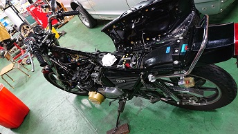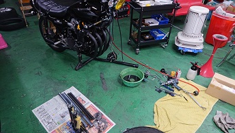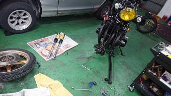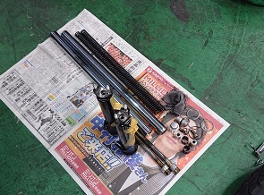 202003/31 手が空いたので! メンテナンス・大将商会 0 3月30日(月) ちょっと落ち着き、慌てなかった作業進めます! トラクターの整備依頼・・・(笑) ベルトのゆるみ・・・コンデンサーやラジエターの目詰まりなど。。。 ガレージでは、KONIの仕上げを頼まれていたのも進めていきます。 以前、自分用に準備していた330KONIですが、お世話になってる知人より頼まれたので、出すことにします! シャフトも綺麗だし、抜けも無し!! 自分用でのストックだったから、良いものだと思うよ(笑) ブラストを当て塗装準備に! すると、近所のZ400FXがガレージIN! 低回転での、回転の戻りが悪いとか‥‥ 色々調べていきます! しかし・・・この車両、全国でも某有名ショップで購入車ですが、キャブを取り付けるときにインシュレーターを食い込ませての無理やりな装着・・・・。 取り付けるときやバンド閉めるときに気づくと思うけど… そのあたりを改善し、エアースクリューやアクセルわーやーの調整など・・・・しかし、改善が見られない。。。。 あっ!!もしかして。。。 やっぱりそうでした! こちらの商品も、某ショップの軽くなるリターンスプリング・・・・ これは、以前も見ましたが駄目です。。。。 このスプリングを純正に交換すると、1発解決!! 良かった!! けど、こんな落とし穴はなかなか見つけれないよね。。。 機嫌良く乗って帰り、私は自分の作業に戻ります!! ブラスト処理した後、ボディーも整え、塗装完了!! 小物パーツも準備し、研磨作業も終了!! スプリングは、オリジナルの状態が悪くないので、そのまま使いたいのですが、次のオーナーなんはどうなのか・・・・。 一応ボディー乾けば仕上げを進めます! やり始めると、作業早いんだけどね(笑・笑・笑) [13回]