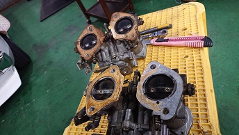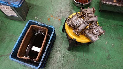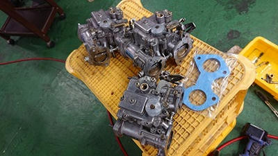 202002/27 整備車輛が多いので・・・・ メンテナンス・大将商会 0 2月19日(水) 修理車両の予約が多いので、順番にこなしていきたいのですが、順番から言うと・・・ 次の車両は、私のガレージより約100キロ離れたところの車両・・・・ なかなか持ってくる機会が無い為、急遽引き取りに行き整備やっていきます。 この車両は、キャブ交換にその他もろもろ・・・・ ソレックス44Φ4型より、ソレックス40ΦS型へ変更!! エンジンが2000ccため低速に力が無いので・・・・ キャブはそのまま使えるのは、ほぼほぼ無いので分解し点検しながら装着していきます!! ソレックス44Φ取り外し完了!! 続いて、ソレックス40Φのキャブを分解していきます! 私のデータにもとずきジェット類とアクスルワイヤーの取付ける扇も購入 二次エアーを吸わないようにインマニの目クラ蓋もしっかりと! ここからが大変な作業なんだよね・・・・ ガスケット剥ぎがたまらなくしんどいわ。。。。 キャブも大分汚れているので、久しぶりの登場!「魔法の液」に漬けることにします!! 剥いだガスケットの山・・・・ 本当に大変です。。。。 今回の作業の中で一番大変なこと終わったので今日は終わります。。。 [13回]
