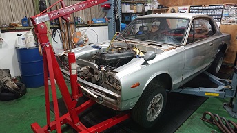 202002/27 ハコスカGT-R ドンドン! メンテナンス・大将商会 0 2月13日(木) 本日ハコスカGT-Rをリフトへ移動し、エンジンミッションを下ろすことにします! 一応、内装周りは外せたので、今日の作業終われば、鈑金屋へ持って行ける日が近くなるわ! 近所のZ乗り~西〇君がたまたま寄ってくれて、押すの手伝ってくれて助かった!! こんな時に限って、やってこないM社長・・・・使えない。。。 底を見るのは初めて・・・・ やっぱりステップ周りは、やっぱり酷いわ‥‥。 ステップ以外は、意外に状態はイイかな??? マフラー外しての・・・・ マフラーですが、普通腐ってボロボロでもおかしくないのに、意外に綺麗な状態じゃ! ミッションオイルやエンジンオイル抜いたりで・・・・ 今日はエンジン、ミッション下ろすのは無理かな。。。。 慌てるとろくなこと無いので明日下ろすことにします! 明日に活躍してくれる道具たちです!! [14回]