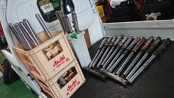 202001/09 片付けの最中に・・・・ メンテナンス・大将商会 0 12月30日(月) 朝から気合を入れ片付けしているのに、マフラーの排気漏れが気になるという連絡が・・・・。 するとやってきた!! マフラーを吊ってるバンドがちぎれて飛んでしまい、マフラーが下がったため擦り切れていた。。。。 ので、マフラーを吊り下げ、擦りきれたところを補修!! 本人満足げに帰って行った。。。。。(微笑) 私は引き続き片づけを!! フォーク・・・何台分出てきたか!! ホイールはまだ一部・・・・ パワーフィルターなんて・・・何台分出てくるやら。。。。 まだあるわ。。。 必要な人差し上げますよ(笑) 本当に片付け大変。。。。 まだまだ続くな。。。。 淡路島のレタス~ これはもらって嬉しい!!! 谷〇君いつもありがとうね!! そして夜は走り納めに、淡路島横断してきました!! 雨上がりだけど、寒くなくてよかった!! って、車でしたけど(笑) [13回]