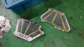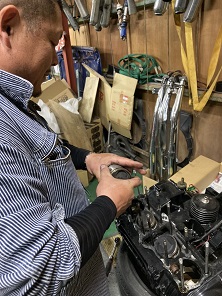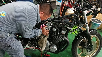 202105/10 私には休みがない。。。 メンテナンス・大将商会 0 5月9日(日) 今日は、11時より2台の単車が入ってくる。 こちらの車両は、以前よりの予約なのでしっかり作業しないと。。。 その前に、Z2エンジンの塗装を剥離しておきます! なぜ、艶ありの塗装をしたのか・・・・。 人それぞれですが。。。。。 一回では無理・・・・ 水洗いして、乾かしていると約束の11時に2台入庫してきました。 2台を優先して作業進めます。 3時までにやらないと、引き渡しに間に合わない!! まず、ゼファーから! 前後のタイヤ交換・サイレンサー交換・フューエルタンクゲージの交換などです。。。。 CB400SFは、フロントブレーキの修理・フロントフォークのOHになります! 私は黙々と作業していますが、、、、、 気が付けはたまり場状態になっており・・・5人ほど(副長・乃一・ウルフ・連長・M社長)遊びに来てるじゃないですか・・・・ 今日は相手に出来ません。。。。 乃一は、車両を持ち込み作業始めてる・・・自分のところでしなさい!! ここはレンタル作業所ではないんですよ!!! みんな暇なのか・・・・彼らが来ると私は赤字になります・・・・ みんなが帰れば冷蔵庫はほぼ空っぽ。。。。。。(泣) 車両の引き渡し時間少し過ぎましたが、無事に納車です!! 私は再び剥離作業・・・・ 2回すると、9割ほど剥ぐことが出来ました。 まだ、残りのパーツがありますが後日。。。。 作業を終え、片づけ掃除を済ませると、、、、 作業途中なので車両を置いて帰る乃一。。。。 ただでさえ作業するのに車両の移動しながらやってるのに、ほんと邪魔。。。。 今日も疲れた。。。。 また明日の朝が辛い。。。。。。。 [16回]