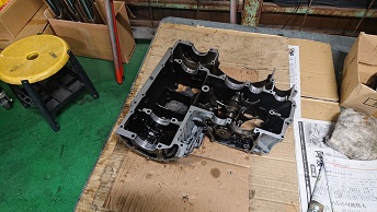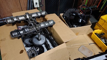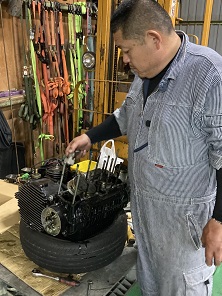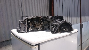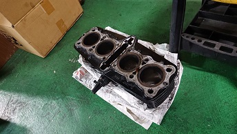 202105/10 やっとZ2エンジンに着手!! メンテナンス・大将商会 0 5月7日(金) やっと、Z2エンジンに手を付けることが出来ます!! 早く分解して、悪いところを直し組んでいかないと!! 大変な事になってる・・・ ヘッドにオイル不足になったせいか、シムが飛び出てきてカムがロック・・・・ その勢いで、カムチェーンが切れてる。。。。 今まで何台ものZのエンジン分解しましたが、カムチェーンが切れているのは初めてです。 辛いですが、ヘッド廻りのパールはダメです。。。。 ヘッドも使えるか、明日内燃機屋に持ち込みます! 明日、朝一番からヘッド・シリンダーのガスケットなどをきれいに剥ぎ取り、内燃機屋に持ち込むとします。 シリンダーも計測してもらいますが、使えると良いのですが・・・・。 [15回]
