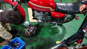 202105/11 日々バタバタ・・・ メンテナンス・大将商会 0 5月10日(月) 日にも日にもすることが・・・・・ 今日は、Z1のワンウェイクラッチの修理です! 以前にも交換してあったので、再度開けて点検しておきます! 異常は見られませんが・・・・一つ気になるところがありますが。。。 確認しながら再度組み立てします! 普通にセルは回るのですが、ちょっと様子見てもらうことにします! Z2ヘッドにバルブなどを組む前に、色剝ぎをしておきます! 剥離している間に、KZ900のホイールにタイヤ組付けます! TT100ですが、やっぱり世の中・・・単車が多く動いているせいか、初めて在庫切れの経験しました。 無事、130/80-18入荷できました! ベアリングも新品取り換えておきます。 まだまだ取り付ける作業までいかないので、このまま保管しておきます! ヘッドを水洗いし、また明日2度目の剥離作業することにします。 その他のエンジンパーツのGK・PK剥しておき準備万端! Z2製作作業も着々と進めていきます! [18回]