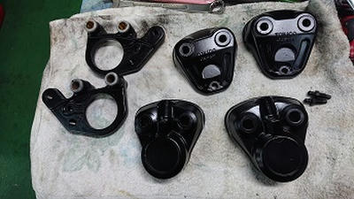 201912/02 飛び入り作業・・・・ メンテナンス・大将商会 0 11月30日(土) 私にとって、癒しの土曜日が・・・・ 昨晩、嫁が縁石と喧嘩したみたい・・・・負けるでしょ。。。。 実はこのフロントスポイラー2本目。。。。 前のスポイラー補修しておいててよかった。。。。 このバラバラ・・・・K本さん・・・直るかな?(笑) しかし、このスポイラーは擦るよね。。。 ノーマルで、この隙間だもん。。。。 中古また、探しておかないと。。。。 私もついでに、プリウスのホイール交換しておきます! こんな感じになりました! やっぱり・・・普通に乗れない私。。。(笑) さぁーキャリパーだけ組んで作業終了しますか! 我ながら、キャリパーの色合いに感心するわ(笑) ちょっと体力付けに。。。。 また、明日も頑張らないと! [13回]