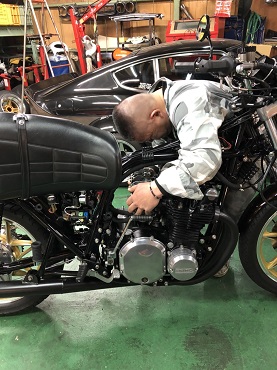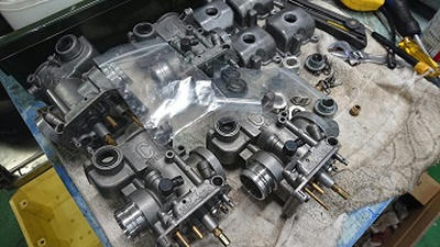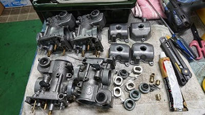 201912/02 呆気なく終わった日曜日。。。 SHOWA 0 12月1日(日) お決まりの休日の作業は早くから(笑) ガレージに8時30分!!! まだ寒い。。。。 いよいよ今月陸自に持ち込み車検します! 最終点検!! Z2にキャリパー取付けていきます! ライトも、取付けますよ! 目玉シール貼り付け完成! 後は、キャブだけ! 昼から、ヨンメリをちょっと触ってみます! 出出しのスローにもたつきがあるとの事で・・・・ しかし・・・ L20にソレックス44は・・・ちょっとマッティングがね。。。。 改善としては、パイロットジェットの番手を大きくしたいが、在庫が・・・・元々付いていたジェットよりまず2.5大きくしたけど・・・・ちょっとマシ??になったと思うけど、もう少し大きくしたいかな。。。 注文しておきます! 綺麗なヨンメリですよ!! 大事に!! まぁーまぁー時間かかるんだよね… 同調とか油面、全て確認したから。。。。 この後は、ブタケツをリフトに上げ、下回りやブレーキの確認しておきます。 ブレーキランプが気になりますが・・・また明日に! それからそれから、Z2のキャブ・・・VM29?CR29? 悩みましたが、在庫のCR29をOHして取り付けることにします。 後回しし続けてたCR29なので、一番汚い。。。(笑) 頑張って仕上げていきます。 なかなかくたびれているCR29・・・ですが、復活させますよ! Z2も、ほぼほぼ完成です。 短期間でしたが、よく頑張ったと思います!(笑) [15回]