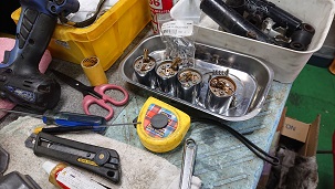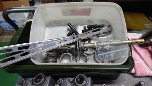 201912/03 欠品が多い・・・・ メンテナンス・大将商会 0 12月2日(月) 先日分解した、CR29を清掃していきます! お決まりの「魔法の液」に漬け込み~ 錆びたパーツは・・・エコするためにブラストあてて、再メッキします! Oリング類を注文しないといけないのですが、欠品パーツが多い・・・・ このままだと仕上がらない。。。。。 またまた裏技使って入手するしかないな!!!(笑) [14回]