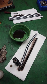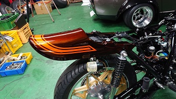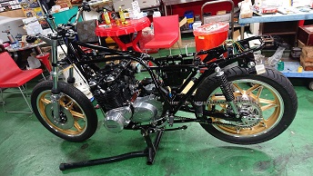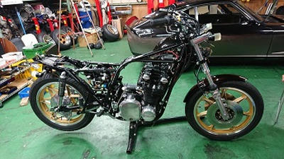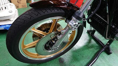 201911/25 今日もセコセコと・・・・ メンテナンス・大将商会 0 11月22日(金) さぁー今日もセコセコやっていきます! Z2にマフラーの取り付けなど進めていきますよ! マフラーが甦りました! ちょっと、火の玉のテールカウル付けてみたよ! 完成近付き、ニヤけるわwww 続いて、先日入庫してきた事故Z400FX・・・ インナーチューブの入れ替えと、シール交換やっていきます! なかなかの「くの字」じゃ!! 完成! 元々付いていたフロントアクスルシャフトは使用不可能なので、ガレージで探し回ってやっと見つけたのでこれも準備しておきます! フレーム修正・ホイール修正・ディスク修正・ステム修正もそろそろ完成かな? [10回]