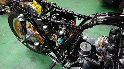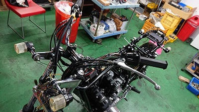 201911/22 やっぱりZ2はイイ!! メンテナンス・大将商会 0 11月21日(木) ドンドン進めていきます! 今日は、ハーネスなど取付けていきます! マフラーの塗装も完了です! 最近は、マフラー塗装も減ってきたので、久しぶりに感じましたよ! フロントブレーキのキャリパーは、まだブラスト処理して塗装が進められていないので、ブレーキラインだけ取付けておきます。 外装も、黒と火の玉どちらかに迷いましたが、今回は火の玉に! メーターも、第1倉庫を整理していたら出てくるは出てくるはで・・・・(笑) オリジナルの程度の良いものあったので、この際在庫せずに取り付けます! ライトケースもブラストして、塗装しないといけない・・・・ キャリパー2つも・・・・ この作業は、ちょっと時間かかるかな。。。 けど・・・ やっぱりZ2は、カッコいいわ!! [16回]