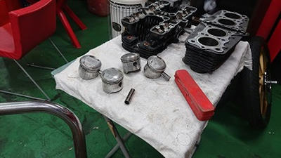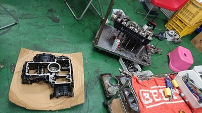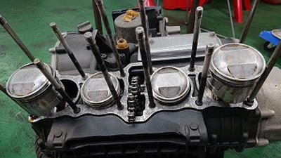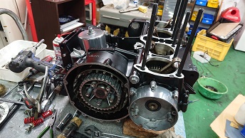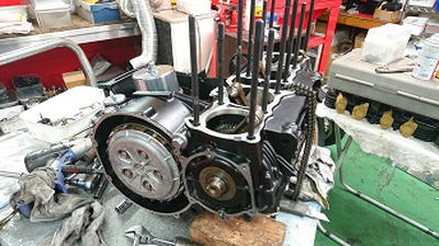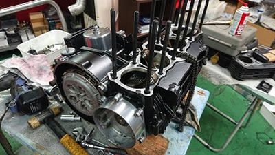 201911/13 ボチボチと! メンテナンス・大将商会 0 11月12日(火) 載せ替えるクランクケースにボチボチ組んでいきます! 1つづつチェックしながらですが、数年前に組んでるからまず大丈夫だと思います。 エンジンスタッドボルトもクロモリに交換することにしますが、ネジ山は熱がかかりきつくなっているので、タップ切りから始めることにするか!! なかなかのキツキツです! 新品エンジンスタッド交換完了! クランクケース内を掃除して、組んでいきますよ! シフトフォーク取付できたので、アッパーに移ります!! 今日も、来客が多く、集中してできないので、今日もここまでにして明日クランクケース仕上げていきます! [14回]