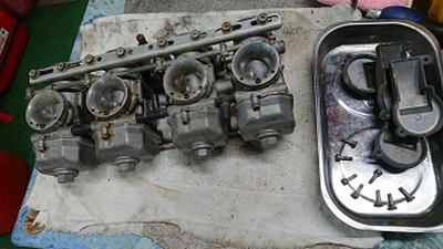 201912/02 呆気なく終わった日曜日。。。 SHOWA 0 12月1日(日) お決まりの休日の作業は早くから(笑) ガレージに8時30分!!! まだ寒い。。。。 いよいよ今月陸自に持ち込み車検します! 最終点検!! Z2にキャリパー取付けていきます! ライトも、取付けますよ! 目玉シール貼り付け完成! 後は、キャブだけ! 昼から、ヨンメリをちょっと触ってみます! 出出しのスローにもたつきがあるとの事で・・・・ しかし・・・ L20にソレックス44は・・・ちょっとマッティングがね。。。。 改善としては、パイロットジェットの番手を大きくしたいが、在庫が・・・・元々付いていたジェットよりまず2.5大きくしたけど・・・・ちょっとマシ??になったと思うけど、もう少し大きくしたいかな。。。 注文しておきます! 綺麗なヨンメリですよ!! 大事に!! まぁーまぁー時間かかるんだよね… 同調とか油面、全て確認したから。。。。 この後は、ブタケツをリフトに上げ、下回りやブレーキの確認しておきます。 ブレーキランプが気になりますが・・・また明日に! それからそれから、Z2のキャブ・・・VM29?CR29? 悩みましたが、在庫のCR29をOHして取り付けることにします。 後回しし続けてたCR29なので、一番汚い。。。(笑) 頑張って仕上げていきます。 なかなかくたびれているCR29・・・ですが、復活させますよ! Z2も、ほぼほぼ完成です。 短期間でしたが、よく頑張ったと思います!(笑) [15回]