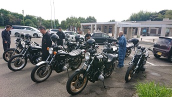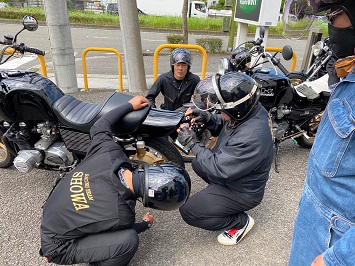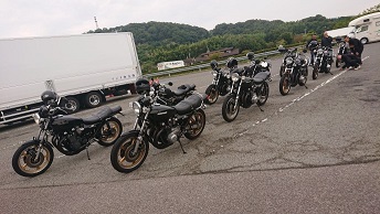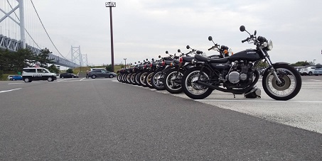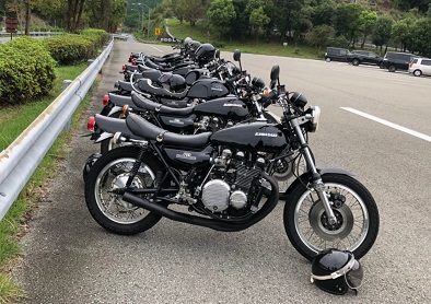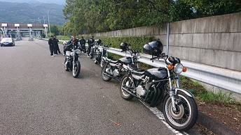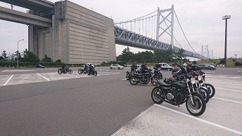 202009/23 久し振りの「SHOWA」ツーリング! SHOWA 0 9月20日(日) 久振りの「SHOWA」ツーリング!! 直幸のZ2デビューもあるし、しかも直幸の誕生日!!! みんな安全運転で、楽しくいこう!! 徳島の集合は、土成町!! ここより、川之江三島インターへ向かい、まぁー君・KONI達と合流! ホント、笑いの絶えないグループです!!!(笑) 本日は、高知へ向かいます! 途中、副長のリアフェンダーに亀裂・・・ KONIが発見!グラグラだったので、テープで応急処置。。。。 私が直してる最中の合間でも、みんな楽しく遊んでるし・・・・ 高知の「ひろめ市場」コロナコロナ行ってるけど、凄い人だ。。。 またまたKONIが発見!! チェーンのクリップが飛んで無くなってるよ(笑・笑)って、笑いながら伝えてきた!!あらさがしのプロじゃ!あいつは。。。。(笑) やっと席が空き店内へ! 独りぼっちぽい私・・・なぜ人数分の席を確保したかわからんわ。。。 相変わらず、カツオタタキ旨い!! 丁度良い距離!本当に楽しく走れましたが、久しぶりでちょっと疲れたかも。。。。 直幸は、ビビってましたが。。。(笑) [19回]