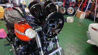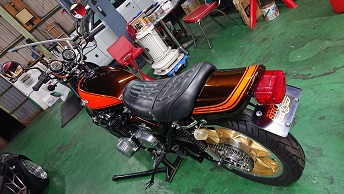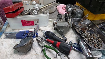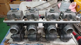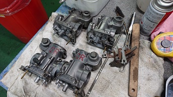 201912/02 呆気なく終わった日曜日。。。 SHOWA 0 12月1日(日) お決まりの休日の作業は早くから(笑) ガレージに8時30分!!! まだ寒い。。。。 いよいよ今月陸自に持ち込み車検します! 最終点検!! Z2にキャリパー取付けていきます! ライトも、取付けますよ! 目玉シール貼り付け完成! 後は、キャブだけ! 昼から、ヨンメリをちょっと触ってみます! 出出しのスローにもたつきがあるとの事で・・・・ しかし・・・ L20にソレックス44は・・・ちょっとマッティングがね。。。。 改善としては、パイロットジェットの番手を大きくしたいが、在庫が・・・・元々付いていたジェットよりまず2.5大きくしたけど・・・・ちょっとマシ??になったと思うけど、もう少し大きくしたいかな。。。 注文しておきます! 綺麗なヨンメリですよ!! 大事に!! まぁーまぁー時間かかるんだよね… 同調とか油面、全て確認したから。。。。 この後は、ブタケツをリフトに上げ、下回りやブレーキの確認しておきます。 ブレーキランプが気になりますが・・・また明日に! それからそれから、Z2のキャブ・・・VM29?CR29? 悩みましたが、在庫のCR29をOHして取り付けることにします。 後回しし続けてたCR29なので、一番汚い。。。(笑) 頑張って仕上げていきます。 なかなかくたびれているCR29・・・ですが、復活させますよ! Z2も、ほぼほぼ完成です。 短期間でしたが、よく頑張ったと思います!(笑) [15回]