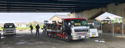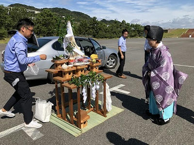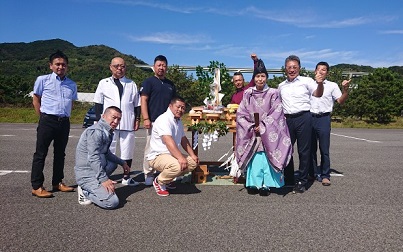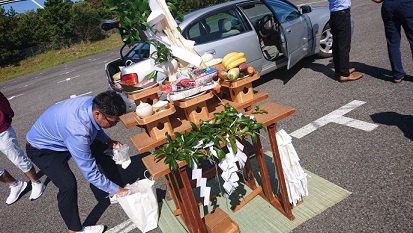 201910/07 イベントは晴天に!! 祈祷式 SHOWA 0 10月4日(金) 今日は、朝から淡路島へ! そして、今朝の新聞を見てみると、1面から少将が出ている!! 大きく載ってるわ! さぁー淡路島へ行ってきます! イベントが晴天で迎えられますようにと、祈祷式して頂きました。 本来は、メンバー全員で参加したかったのですが・・・参加者は5名! 会場到着!! この会場…すごく良い場所なのに、閉鎖されてします。。。 何も無いと、ものすごく広いわ! 祈祷式の準備してくれています! 勿論、PMCも同席です! 無事に祈祷式も終え、昼食へ! 皆さんも、天気祈っておいてくださいね! この後、前夜祭のホテルに立ち寄り、まだ確認の出来ていないメンバーに会場説明! 参加メンバーの皆さんお疲れさまでした! この後、徳島へ帰り、連長が230を引き取りに! バッチリ直ってますから!! かなりハードで、ちょっと疲れました。。。。 [13回]