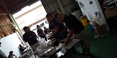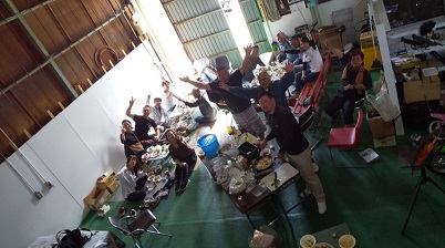 201910/16 Zミーティング決起集会! SHOWA 0 10月13日(日) ミーティング前に活気づけにBBQしますよ! 決起集会です!! メンバーと当日お手伝いをお願いする、GROW・Real‘sさんにも参加して頂きました! 私は、前日から準備に追われ・・・・ ガレージ内の車を移動するなど大変。。。。 本番当日!! さぁー始めるぞ! 焼きそば屋さん!! ダチョウ倶楽部・・・・ コニーの嫌がらせ。。。。 見た目が悪いけど、味バツグン!! 平野君の差し入れ!! もぉーゆるキャラ状態。。。。。 帰らせないように連長の意地悪開始! ミーティング当日は、皆さんよろしく!! [15回]
