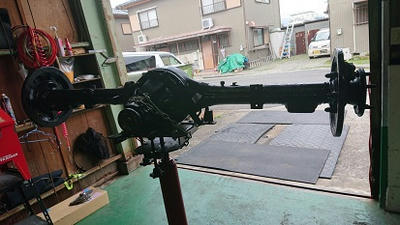 201907/01 330・・・間近! SHOWA 0 6月30日(日) 癒し注入!! 栄養ドリング注入!! で、頑張っていきます! ようやく、330のホーシングが出来た!! 早速取付けていきます!! やっぱり重たい。。。。。 デフオイルも注入!! ブレーキのエア抜きの完了!! しかし・・・・ 外すときにも感じたけど、・・・・ サイドブレーキ元々効いていたか?? アーム部分がクタクタ・・・・・ 何度調整しても無理そうなので、クタクタ部分に別注スリーブを製作して取付けてから調整したいと思います。。。 構造上、この造りで何故サイドが引けるのかが分からない。。。。 カラー出来上がるまで、リフトUPしておきます。。。。 [10回]
